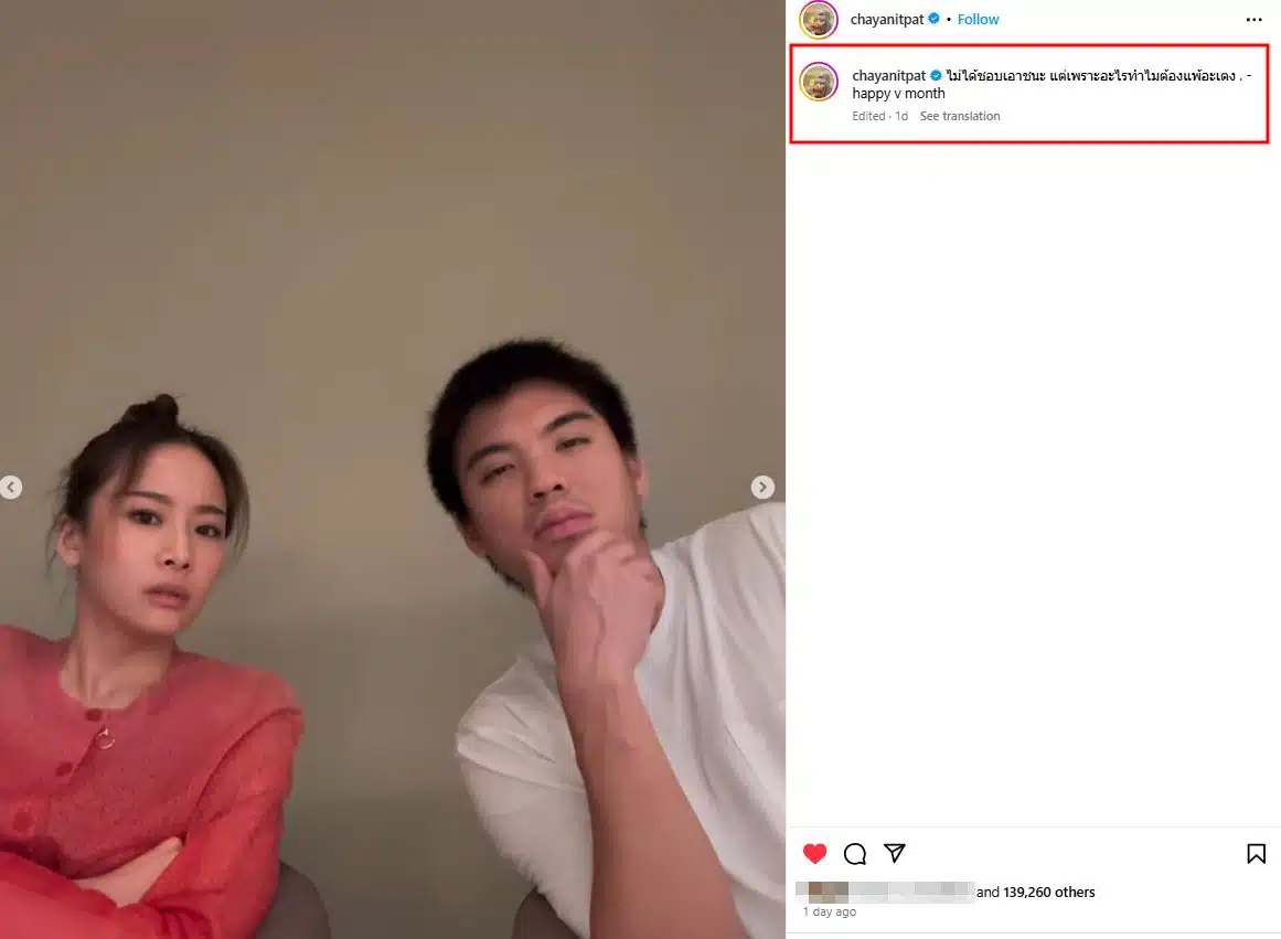 ทำเอาเหล่าคนโสดอิจฉาตาร้อนกันทั้งโซเชียล เมื่อนักแสดงสาวสุดเฟียร์ซ แพต ชญานิษฐ์ ขออยู่โหมดเมารัก เปิดตัวแฟนหนุ่มต้อนรับวันวาเลนไทน์ เสิร์ฟคลิปดินเนอร์คู่สุดน่ารัก พร้อมแคปชั่นหวาน “ไม่ได้ชอบเอาชนะ แต่เพราะอะไรทำไมต้องแพ้อะเตง . – happy v month” แถมมาด้วยกุหลาบแดงช่อโต งานนี้บอกเลยทำถึงมาก เพื่อน ๆ ทั้งในและนอกวงการบันเทิง รวมถึงแฟนคลับต่างก็เข้ามาคอมเมนต์แซวกันยกใหญ่