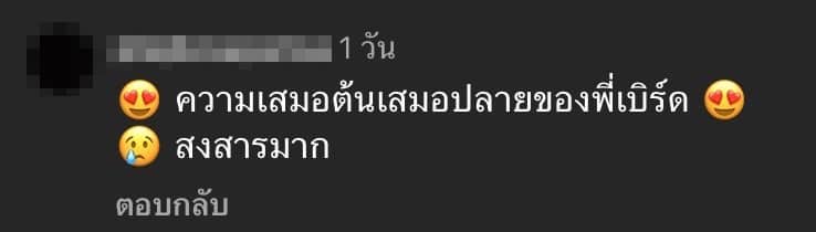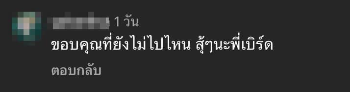 ด้านแฟนคลับที่ได้เห็นโพสต์ดังกล่าวก็ได้เข้ามาแสดงความคิดเห็นกันมากมาย โดยเป็นการชื่นชมและให้กำลังใจหนุ่มเบิร์ดที่ยังคงรัก ดูแล และหวังดีกับแตงโม นิดา อยู่เสมอ แม้ว่าเธอจะจากโลกนี้ไปนานกว่า 3 ปีแล้วก็ตาม