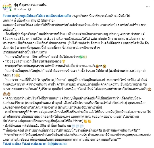 เหตุเกิดที่ เชียงใหม่ สาขา2 (สันทราย) ตอนแรกคิดว่าจะไม่ลง แต่เราได้ปรึกษากับแฟรนไชส์เจ้าของร้านแล้วว่า เราควรปกป้อง แฟรนไชส์ซีของเราเหมือนกัน