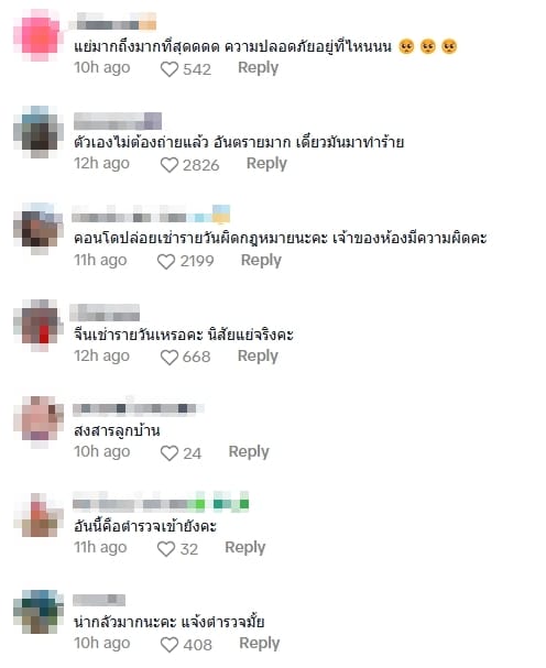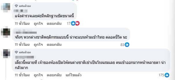 ขณะที่ชาวเน็ตต่างก็พากันเข้ามาแสดงความคิดเห็นวิพากวิจารณ์การกระทำของชายชาวต่างชาติคนดังกล่าว ทั้งยังถามหาความปลอดภัยของลูกบ้านที่อาศัยอยู่ในคอนโดที่เกิดเหตุ พร้อมแนะนำให้เจ้าของคลิปนำคลิปหลักฐานที่ถ่ายมาได้นำไปแจ้งความดำเนินคดีอย่างที่สุด