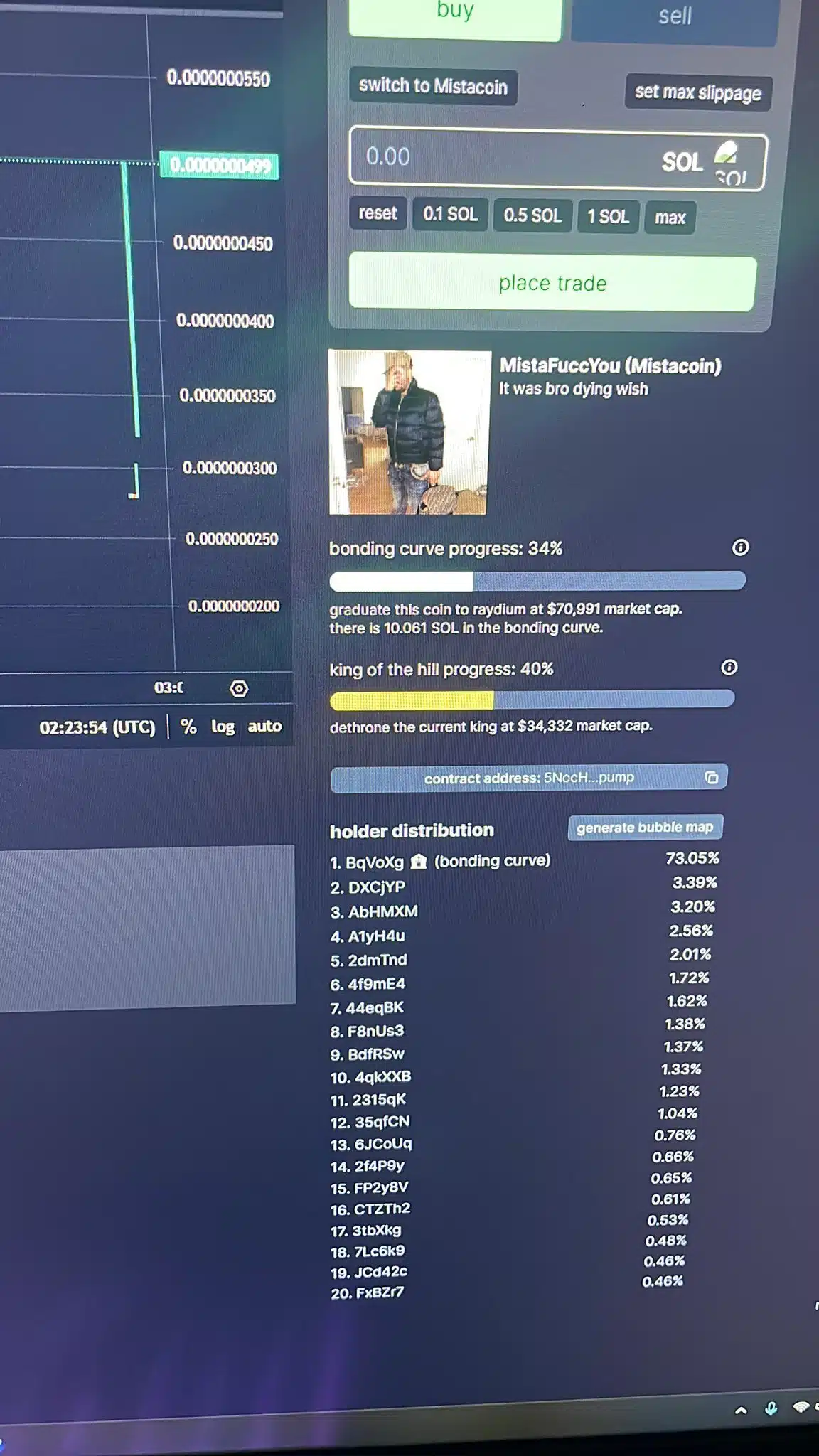 ไลฟ์สดดังกล่าวยาวกว่า 30 นาที และทันทีที่เขาปลิดชีพตัวเอง เหล่าชุมชนคริปโตก็ตอบสนองแบบเรียลไทม์ทันที เพราะไม่กี่นาทีหลังจากเขาเสียชีวิต เหรียญมีมชื่อ “Mistacoin” ก็ปรากฏขึ้น โดยนักพัฒนาได้ส่งเหรียญให้เขา 70% ของจำนวนทั้งหมดก่อนเขาเสียชีวิต