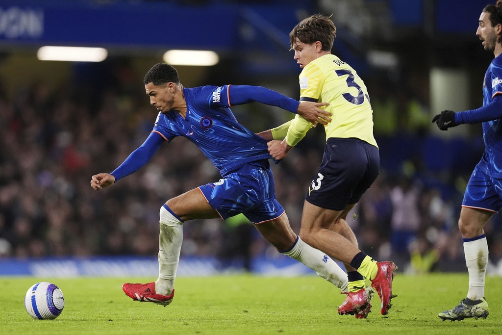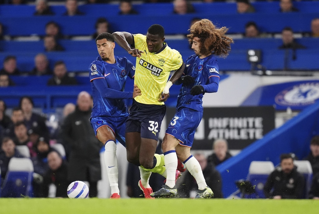 Chelsea’s Christopher Nkunku, left, and Southampton’s Yukinari Sugawara battle for the ball during the English Premier League soccer match at Stamford Bridge, London, Tuesday, Feb. 25, 2025. (John Walton/PA via AP)Chelsea manager Enzo Maresca gestures after the Premier League soccer match against Southampton, Tuesday, Feb. 25, 2025, at Stamford Bridge in London. (John Walton/PA via AP)Chelsea’s Levi Colwill, left, and Southampton’s Tyler Dibling battle for the ball during the English Premier League soccer match between Chelsea and Southampton at Stamford Bridge, London, Tuesday, Feb. 25, 2025. (John Walton/PA via AP)Chelsea’s Cole Palmer, left, and Southampton’s Will Smallbone battle for the ball during the English Premier League soccer match between Chelsea and Southampton at Stamford Bridge, London, Tuesday, Feb. 25, 2025. (John Walton/PA via AP)Chelsea’s Christopher Nkunku celebrates scoring their side’s first goal of the game during the English Premier League soccer match between Chelsea and Southampton at Stamford Bridge, London, Tuesday, Feb. 25, 2025. (John Walton/PA via AP)Southampton’s Paul Onuachu, center, battles for the ball with Chelsea’s Marc Cucurella, right, and Levi Colwill during the English Premier League soccer match at Stamford Bridge, London, Tuesday, Feb. 25, 2025. (John Walton/PA via AP)