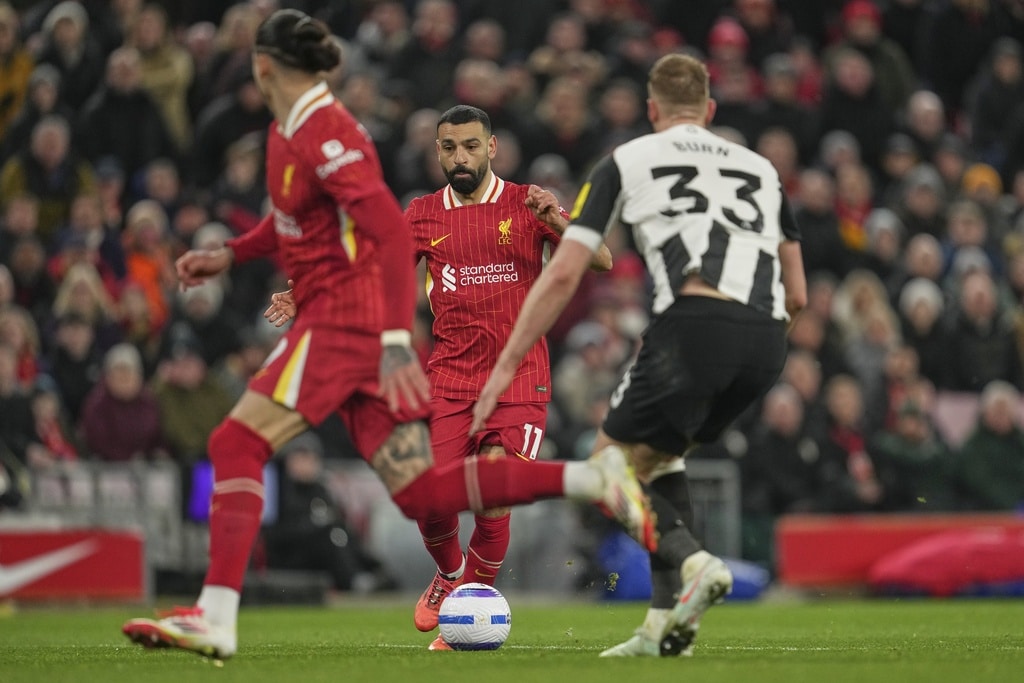 Newcastle’s Bruno Guimaraes is challenged by Liverpool’s Alexis Mac Allister, left, during the English Premier League soccer match between Liverpool and Newcastle United at Anfield in Liverpool, Wednesday, Feb. 26, 2025. (AP Photo/Jon Super)Newcastle’s Dan Burn, left, challenges Liverpool’s Dominik Szoboszlai during the English Premier League soccer match between Liverpool and Newcastle United at Anfield in Liverpool, Wednesday, Feb. 26, 2025. (AP Photo/Jon Super)Newcastle’s Jacob Murphy challenges Liverpool’s Mohamed Salah during the English Premier League soccer match between Liverpool and Newcastle United at Anfield in Liverpool, Wednesday, Feb. 26, 2025. (AP Photo/Jon Super)Liverpool’s Wataru Endo in action during the English Premier League soccer match between Liverpool and Newcastle United at Anfield in Liverpool, Wednesday, Feb. 26, 2025. (AP Photo/Jon Super)Liverpool’s Mohamed Salah runs with the ball during the English Premier League soccer match between Liverpool and Newcastle United at Anfield in Liverpool, Wednesday, Feb. 26, 2025. (AP Photo/Jon Super)Newcastle’s Dan Burn, left, challenges Liverpool’s Dominik Szoboszlai during the English Premier League soccer match between Liverpool and Newcastle United at Anfield in Liverpool, Wednesday, Feb. 26, 2025. (AP Photo/Jon Super)Liverpool’s Trent Alexander-Arnold, left, battles for the ball with Newcastle’s Joe Willock during the English Premier League soccer match between Liverpool and Newcastle United at Anfield in Liverpool, Wednesday, Feb. 26, 2025. (AP Photo/Jon Super)