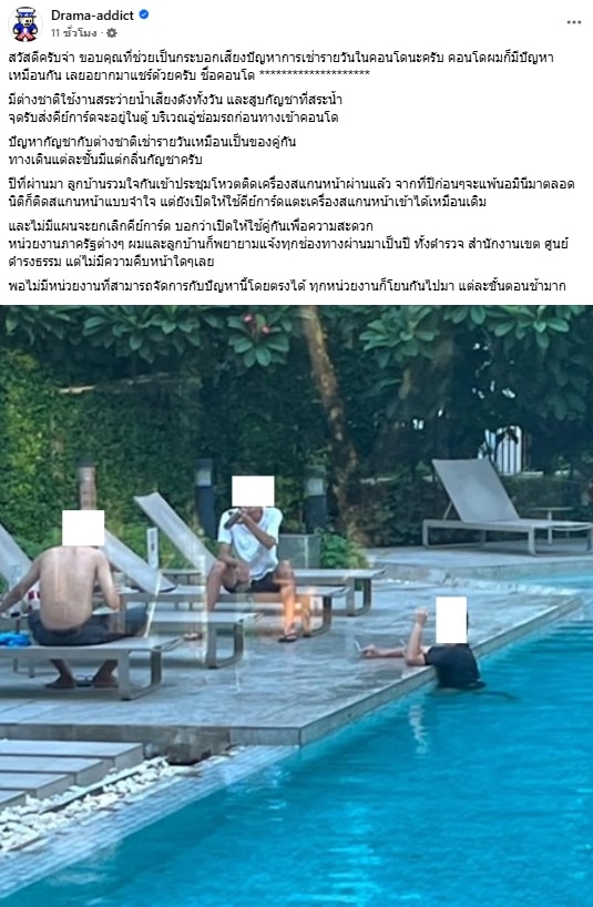 มีต่างชาติใช้งานสระว่ายน้ำเสียงดังทั้งวัน และสูบกัญชาที่สระน้ำ