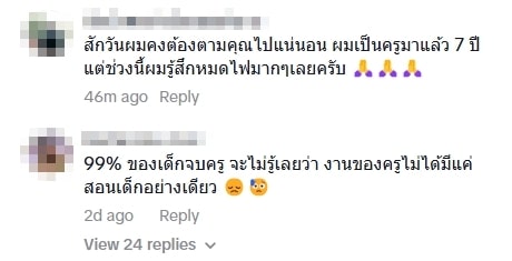 แล้วก็มาเข้าสู่คำถามที่ว่า ถ้าเป็นดั่งใจหวังขนาดนี้แล้วจะลาออกทำไม คำตอบก็คือ การเป็นครูมันมีปัจจัยหลายอย่างมากๆ นอกเหนือว่าที่ทุกคนจะรู้ เคยได้ยินประโยคเหมือนกันว่า เป็นครูแค่สอนสบายจะตาย เป็นครูสิมั่นคง แต่ทุกวันนี้มันมีปัจจัยอื่นๆ ที่เข้ามาเกี่ยวข้อง ที่ทำให้งานครูมันไม่ใช่แค่งานสอน และรวมถึงหลาย ๆ อย่าง หลาย ๆ องค์ประกอบ