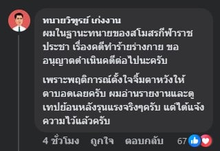 หลังจากที่โพสต์แถลงการณ์ดังกล่าวออกไป ก็มีชาวเน็ตเข้ามาแสดงความเห็นกันอย่างมากมาย และหนึ่งในนั้นก็คือ ทนายวิฑูรย์ เก่งงาน ที่ระบุว่าเขาได้รับมอบหมายให้เป็นทนายความของสโมสรราชประชา พร้อมคอมเมนต์ว่า “ผมในฐานะทนายของสโมสรกีฬาราชประชา เรื่องคดีทำร้ายร่างกาย ขออนุญาตดำเนินคดีต่อไปนะครับ เพราะพฤติการณ์ตั้งใจจิ้มตาหวังให้ตาบอดเลยครับ ผมอ่านรายงานและดูเทปย้อนหลังรุนแรงจริงๆครับ แต่ได้แจ้งความไว้แล้วครับ”