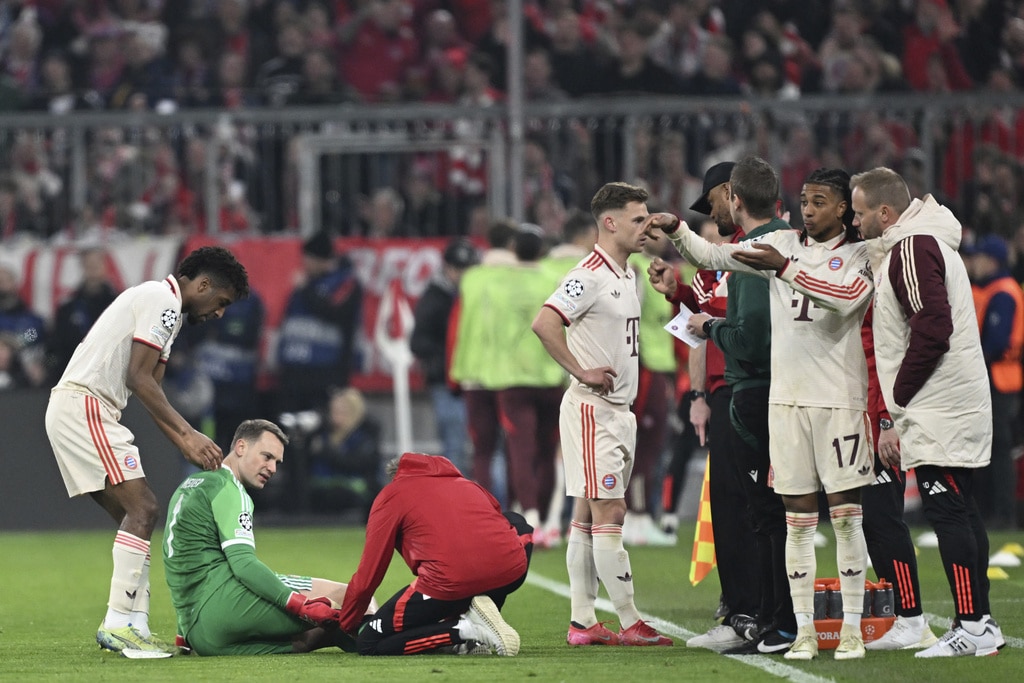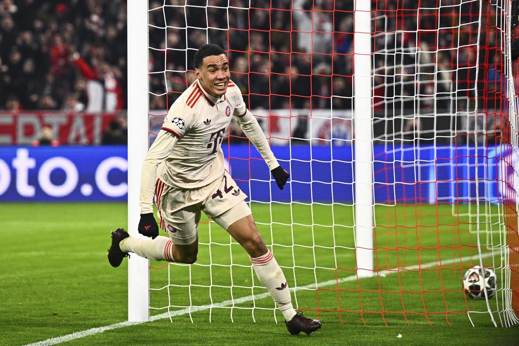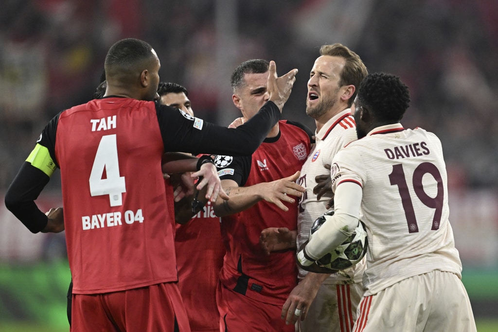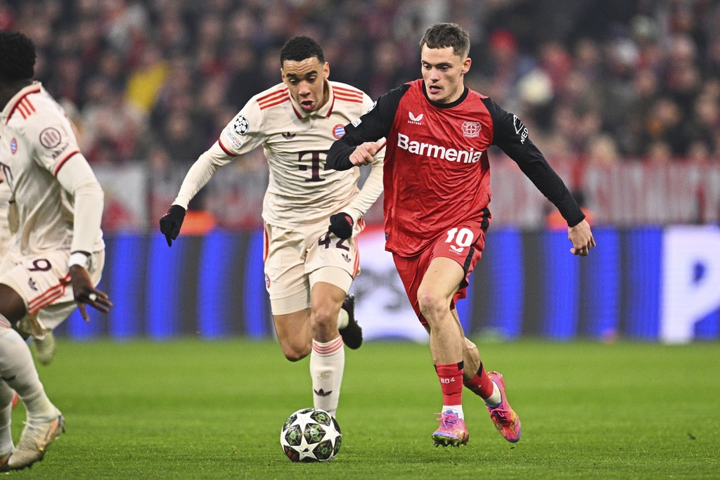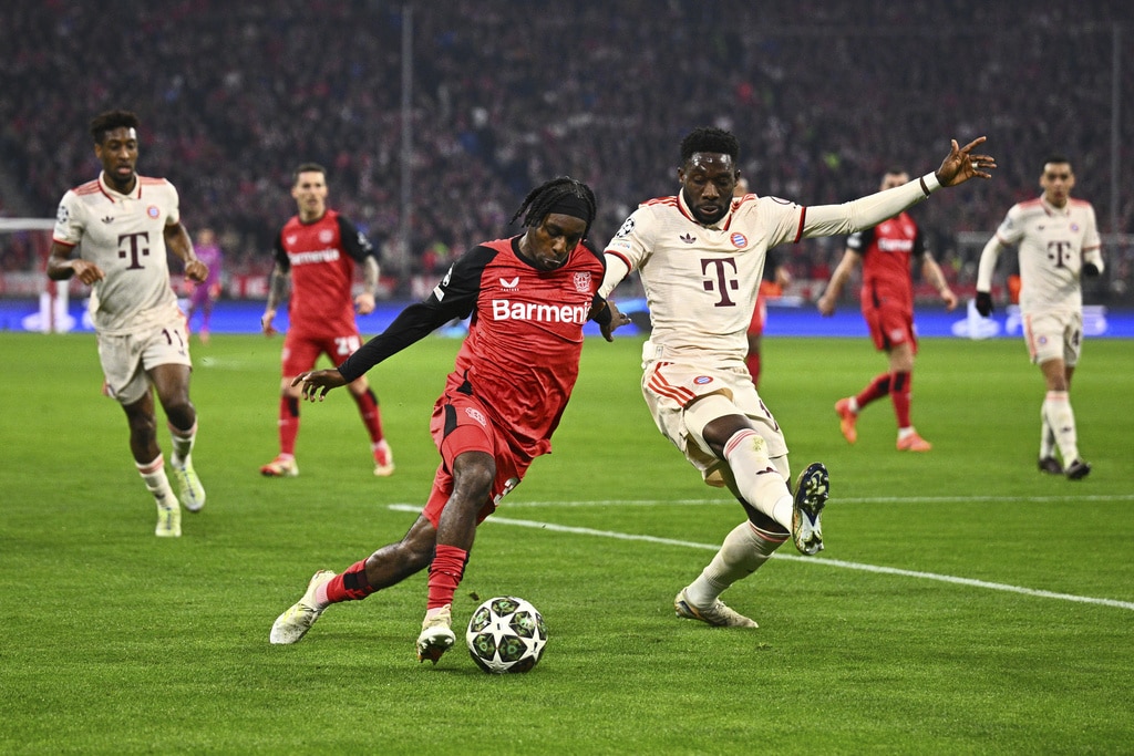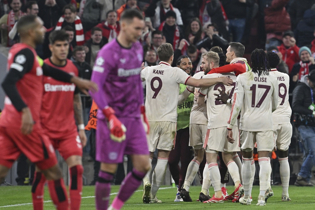 Leverkusen’s Florian Wirtz, left, and Munich’s Harry Kane, right, challenge for the ball during the Champions League round of 16 first leg soccer match between FC Bayern Munich and Bayer 04 Leverkusen in Munich, Germany, Wednesday, March 5, 2025. (Peter Kneffel/dpa via AP)Leverkusen’s Jeremie Frimpong, left, tries to get [past Munich’s Alphonso Davies during the Champions League round of 16 first leg soccer match between FC Bayern Munich and Bayer 04 Leverkusen in Munich, Germany, Wednesday, March 5, 2025. (Tom Weller/dpa via AP)Munich’s Jamal Musiala celebrates after scoring his side’s second goal during the Champions League round of 16 first leg soccer match between FC Bayern Munich and Bayer 04 Leverkusen in Munich, Germany, Wednesday, March 5, 2025. (Tom Weller/dpa via AP)Munich’s goalkeeper Manuel Neuer, second left, receives treatment during the Champions League round of 16 first leg soccer match between FC Bayern Munich and Bayer 04 Leverkusen in Munich, Germany, Wednesday, March 5, 2025. (Sven Hoppe/dpa via AP)Munich players, rear, celebrate their side’s second goal during the Champions League round of 16 first leg soccer match between FC Bayern Munich and Bayer 04 Leverkusen in Munich, Germany, Wednesday, March 5, 2025. (Peter Kneffel/dpa via AP)Munich’s Harry Kane, second right, argues with Leverkusen’s Jonathan Tah, left, during the Champions League round of 16 first leg soccer match between FC Bayern Munich and Bayer 04 Leverkusen in Munich, Germany, Wednesday, March 5, 2025. (Sven Hoppe/dpa via AP)Leverkusen’s Florian Wirtz, right, and Munich’s Jamal Musiala, left, challenge for the ball during the Champions League round of 16 first leg soccer match between FC Bayern Munich and Bayer 04 Leverkusen in Munich, Germany, Wednesday, March 5, 2025. (Tom Weller/dpa via AP)