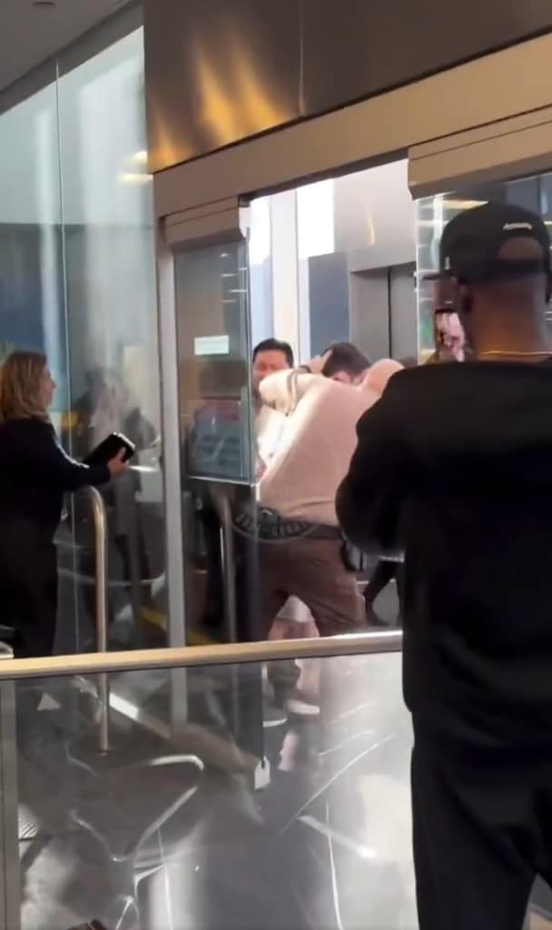รายงานระบุว่า หลังจากที่ทั้งสองคนถูกปฏิเสธไม่ให้ขึ้นเครื่อง ทำให้พวกเขาโกรธจัด ก่อนที่จะผลักผู้เสียหาย 2 คน และมีข้อมูลออกมาว่าตัวฝ่ายหญิงได้สาดกาแฟใส่พวกเขาทั้งสองคน