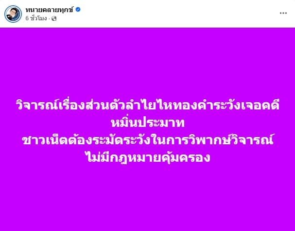“วิจารณ์เรื่องส่วนตัวลำไยไหทองคำระวังเจอคดีหมิ่นประมาท ชาวเน็ตต้องระมัดระวังในการวิพากษ์วิจารณ์ไม่มีกฎหมายคุ้มครอง