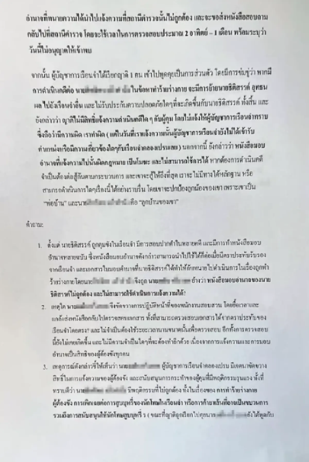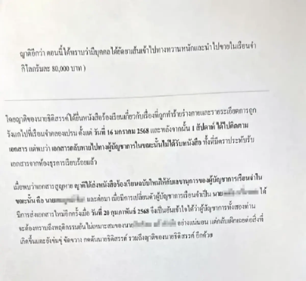 ด้านบนคือเอกสารที่ทางญาติใช้ในการยื่นร้องเรียนที่