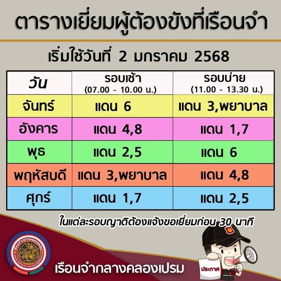 ระเบียบการเยี่ยมผู้ต้องขังในแต่ละแดน