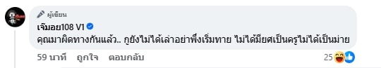 ขณะที่ชาวเน็ตต่างก็เข้ามาคอมเมนต์เดากันไปต่าง ๆ นานาตั้งแต่ยังไม่ทันเริ่มเล่านิทานกันเลย ทว่าเจ๊มอยกลับดักคอขาเผือกเอาไว้แล้วในคอมเมนต์ว่า “คุณมาผิดทางกันแล้ว.. กูยังไม่ได้เล่าอย่าพึ่งเริ่มทาย ไม่ได้มียศเป็นครูไม่ได้เป็นม่าย” งานนี้บอกเลยว่าขาเม้าท์หูผึ่งกันในทันที เตรียมพร้อมรับแรงปะทะของนิทานเรื่องแซ่บเรื่องนี้ของเจ๊มอยกันแล้ว