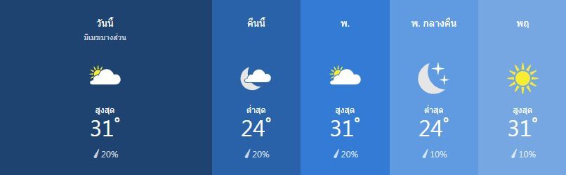 มีเมฆมากเป็นบางส่วน สูง 31เซลเซียส ความเร็วลม ใต้ ที่ 15 ถึง 25 กิโลเมตรต่อชั่วโมง