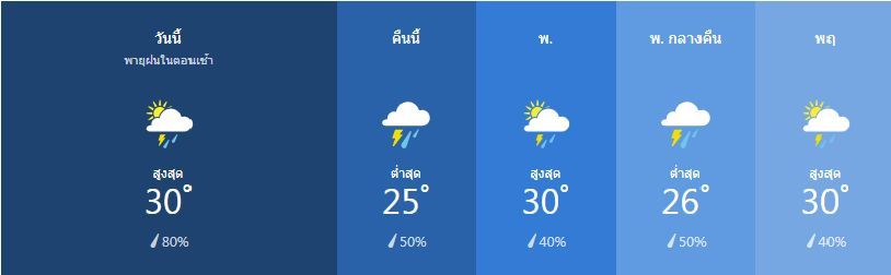 มีพายุฟ้าคะนองในตอนเช้า สูง 30เซลเซียส ความเร็วลม ใต้ ตะวันตกเฉียงใต้ ที่ 15 ถึง 25 กิโลเมตรต่อชั่วโมง โอกาสที่ฝนจะตก 80%