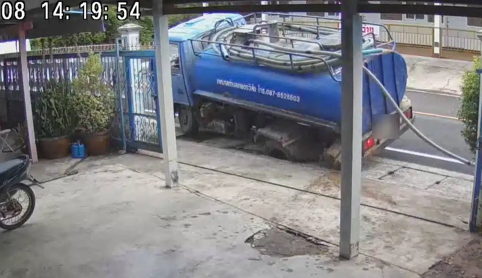 รถดูดส้วมประสบอุบัติเหตุตกท่อน้ำที่แตก ก่อนเทกระจาดสิ่งปฏิกูลท่วมหน้าบ้าน เจ้าของคลิปโพสต์โอด แจ้งหลายครั้งแล้วไม่มาซักที เหม็นขี้