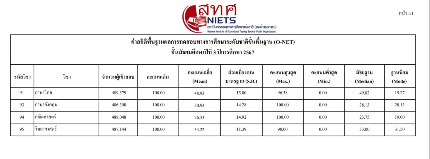 - สรุปคะแนนข้อสอบ O-net ปี 67 ป.6 ม.3 ม.6 สูงสุดเต็ม 100 ต่ำสุด 0