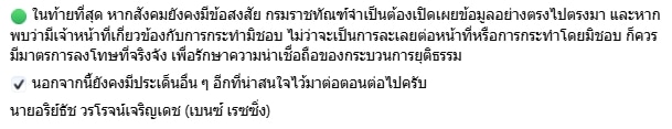 ในท้ายที่สุด หากสังคมยังคงมีข้อสงสัย กรมราชทัณฑ์จำเป็นต้องเปิดเผยข้อมูลอย่างตรงไปตรงมา และหากพบว่ามีเจ้าหน้าที่เกี่ยวข้องกับการกระทำมิชอบ ไม่ว่าจะเป็นการละเลยต่อหน้าที่หรือการกระทำโดยมิชอบ ก็ควรมีมาตรการลงโทษที่จริงจัง เพื่อรักษาความน่าเชื่อถือของกระบวนการยุติธรรม