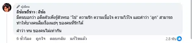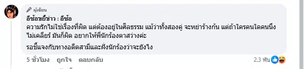 ล่าสุดช่วงกลางดึกที่ผ่านมา (11 มี.ค. 68) เพจอีซ้อขยี้ข่าว ก็มีความเคลื่อนไหวอีกครั้ง ซึ่งรอบนี้เป็นการเล่าเรื่องทั้งหมดจากปริศนาที่ทิ้งไว้ในโพสต์ก่อนหน้านี้ ระบุว่า “อดีตผัวแฉยับถูกอดีตเมียอินฟลูชื่อดัง นอกใจ แอบไปกินแซ่บกับนักร้องดัง จนทำให้ต้องสวมคอนเวิร์สปิดฉากครอบครัวสุขสันต์และจบลงที่การหย่าร้างของทั้งสองฝั่ง แต่ที่มันพีคคือทางอดีตสามีเพิ่งมารู้เรื่องทั้งหมดเมื่อตอนที่ครั้นนั้นเป็นข่าวดัง