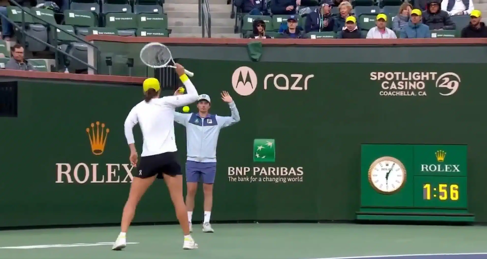 Iga Swiatek hitting ball at ball kid pic.twitter.com/DGdoIG6hc1