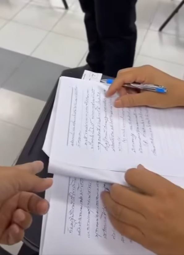 โดยจากคลิปที่ถูกถ่ายโดยเจ้าหน้าที่ ซึ่งเจ้าหน้าที่พบความผิดปกติของผู้สอบคนดังกล่าว จึงเดินไปถามว่า “ทำอะไรหรอคะ?” ทำให้ผู้สอบคนดังกล่าวหน้าถอดสี ก่อนจะขอตรวจกระดาษชุดดังกล่าว ก่อนพบโพยเป็นเอกสาร A4 จำนวนหลายแผ่น ที่ผู้เข้าสอบแอบนำเข้ามาในห้องสอบ โดยใช้กระดาษข้อสอบวางซ้อนทับไว้ ซึ่งผู้คุมสอบกล่าวต่อว่า “แบบนี้นำเข้าไม่ได้”