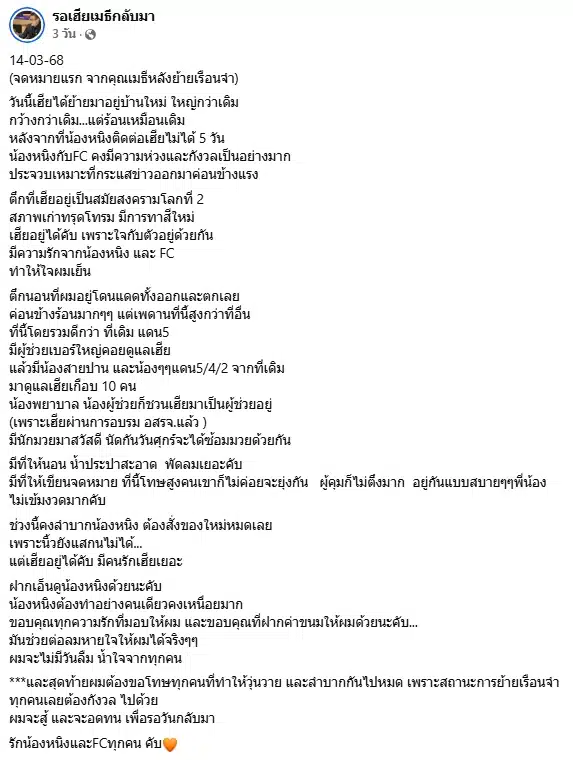 ***และสุดท้ายผมต้องขอโทษทุกคนที่ทำให้วุ่นวาย และลำบากกันไปหมด เพราะสถานะการย้ายเรือนจำ