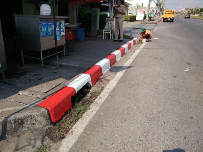 ต่อมา ในช่วงบ่าย นายวุฒิพงษ์ สุภัควนิช นายอำเภอเมืองสมุทรสาคร พร้อมด้วยเจ้าหน้าที่แขวงทางหลวงสมุทรสาคร รุดไปตรวจสอบที่เกิดเหตุ และได้ทาสีขอบฟุตปาธให้กลับมาเป็นขาวแดงเหมือนเดิม พร้อมกับให้เวลารื้อภายใน 7 วัน ถ้าไม่จัดการ เจ้าหน้าที่จะมารื้อโดยเก็บค่ารื้อถอนกับเจ้าของร้านต่อไป