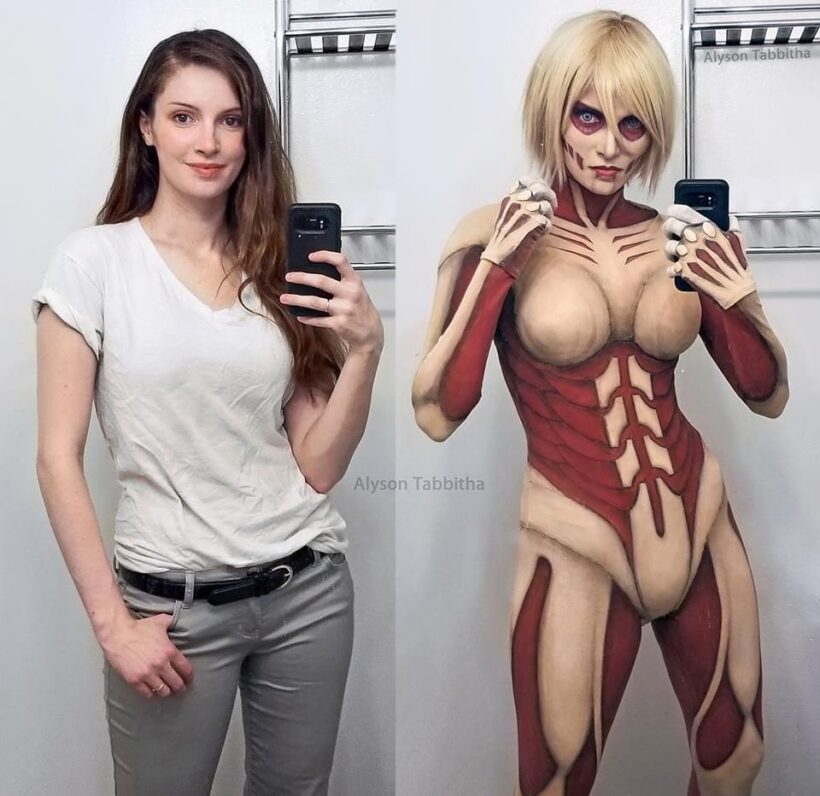 ปกติการคอสเพลย์คือการแต่งการทำผมให้เหมือนกับตัวละครในภาพยนตร์หรือการ์ตูน แต่ผู้ใช้เฟซบุ๊กสาว นามว่า Alyson Tabbitha ก้าวล้ำไปอีกขั้นด้วยการประโคมเมคอัพและเครื่องแต่งกาย คอสเพลย์เป็นตัวละครชนิดที่เหมือนยังกะแกะ ตัวจริงมาเห็นยังต้องอุทานกันบ้างแหละว่าเหมือนมาก ลองทายกันดูว่ามีตัวละครอะไรบ้าง ไม่ยากเลย