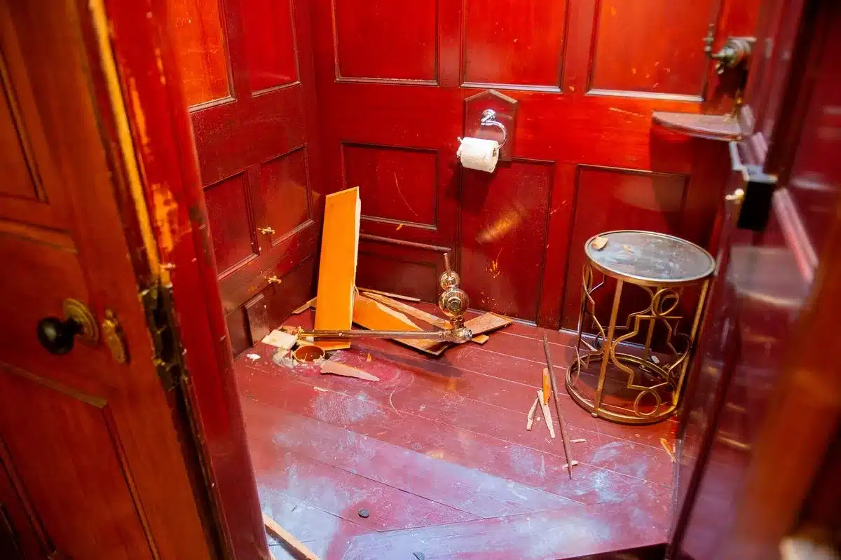 เจมส์ ชีน วัย 40 ปี จากเมืองออกซ์ฟอร์ด รับสารภาพในคดีนี้เมื่อปีที่แล้ว หลังจากตำรวจพบ DNA ของเขาในที่เกิดเหตุและเศษทองคำในเสื้อผ้าของเขา ในขณะที่ชีนเป็นหนึ่งในผู้บงการการโจรกรรม รวมไปถึง ไมเคิล โจนส์ วัย 39 ปี ก็มีส่วนร่วมโดยการไปสำรวจพระราชวังในช่วงวันก่อนการโจรกรรม และอยู่ในที่เกิดเหตุในคืนที่โถส้วมถูกขโมย