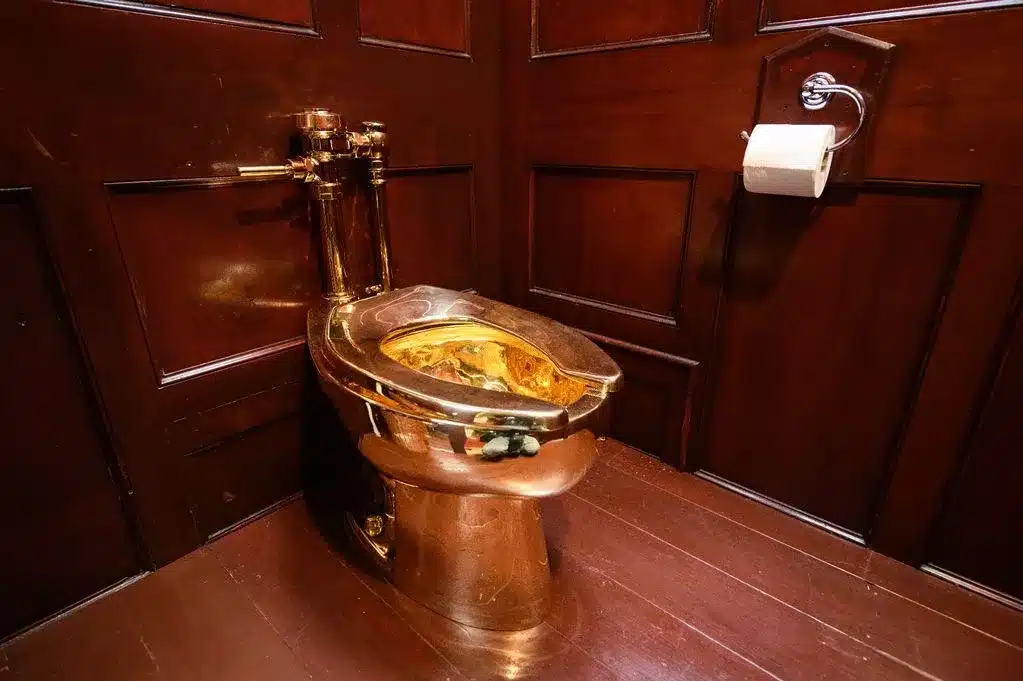 เรื่องดังกล่าวเกิดขึ้นเมื่อวันที่ 14 กันยายน 2019 เมื่อกล้องวงจรปิดจับภาพของคนร้าย 3 คนที่มีอาวุธครบมือ ทั้ง ค้อนปอนด์ และชะแลง เพื่อเข้ามาขโมยส้วนทองคำ ที่สร้างจากทองคำ 18 กะรัต มูลค่ากว่า 4.78 ล้านปอนด์ (ประมาณ 210 ล้านบาท) ในช่วงกลางดึก หลังจากที่มันถูกจัดแสดงโชว์เป็นส่วนหนึ่งของนิทรรศการที่บ้านพักสุดโอ่อ่าในออกซ์ฟอร์ดเชียร์
