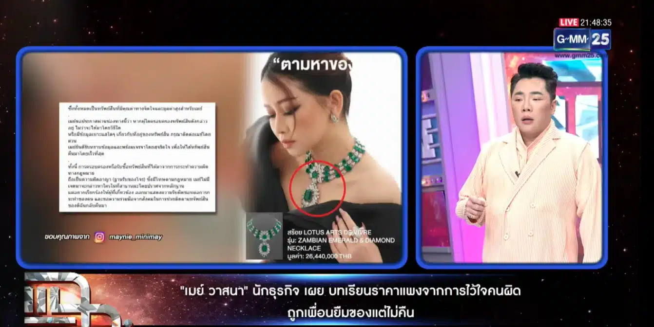 - เมย์ แฉแชต ดิว อริสรา ยืมเงิน-นาฬิกา ก่อนโป๊ะแตก เอาไปจำนำหมด