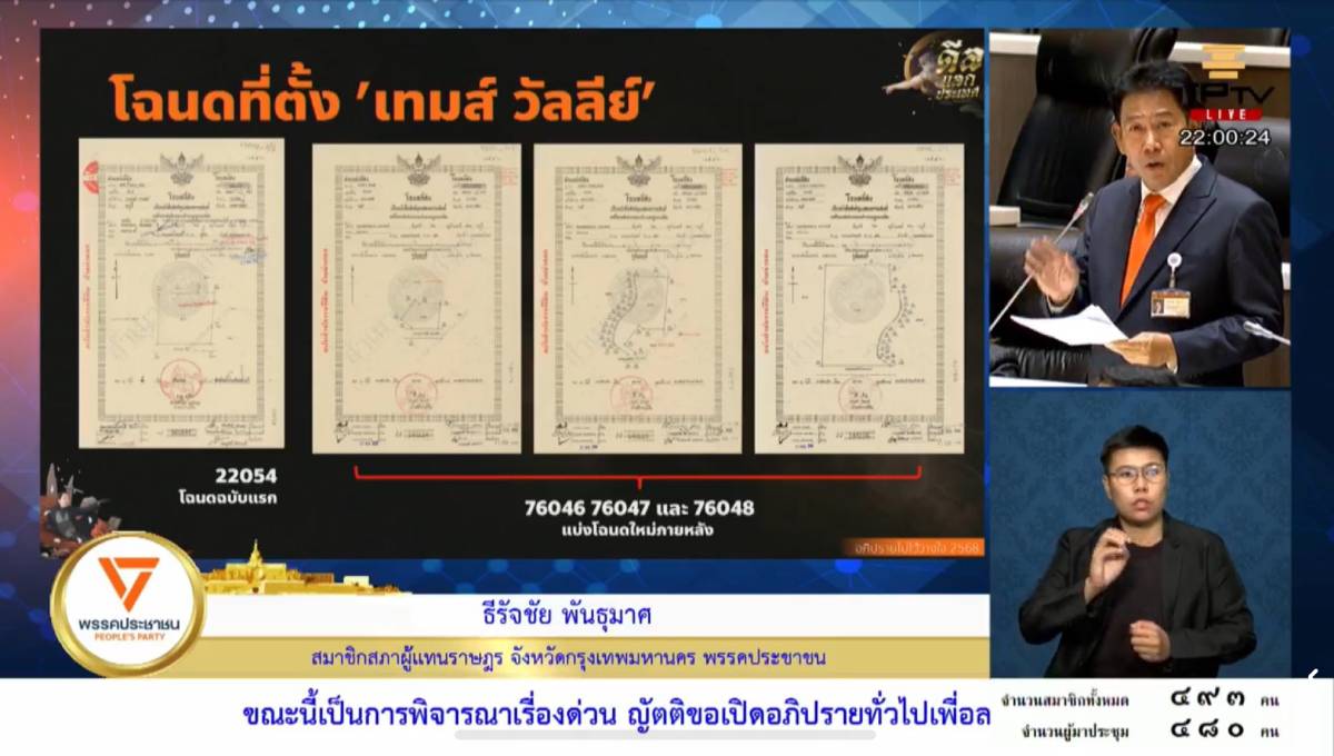 อภิปรายไม่ไว้วางใจนายก 2568 แพทองธาร ชินวัตร วันแรก ทั้ง 2 วิปรัฐบาล VS ฝ่ายค้าน เปิดญัตติ เดือด สส.ธีรัจชัย พรรคประชาชนซักฟอกนายกถือหุ้น โรงแรมเทมส์ วัลลีย์ เขาใหญ่ เปิดหลักฐานโรงแรมหรู Thames Valley Khaoyai อยู่ในเขตพื้นที่ห้ามออกโฉนด-ทำธุรกิจ