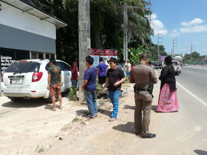 กระบี่ – เก๋งซิ่งแซงทางโค้ง แหกโค้งชน จยย.หนุ่มพนง.โรงแรมร่างกระเด็