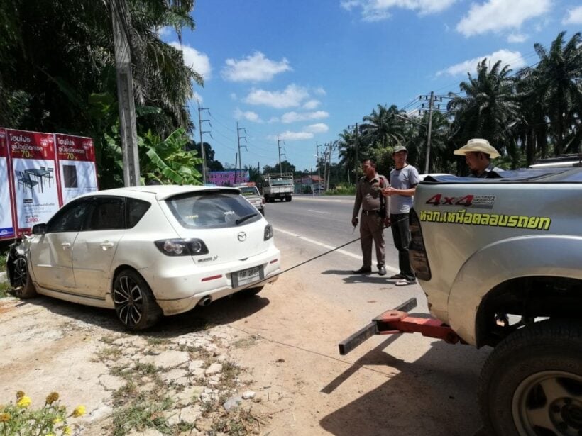 นอกจากนี้รถเก๋งยี่ห้อเชฟโรเล็ต สีขาว ทะเบียน กจ 4222 กระบี่ ซึ่งจอดอยู่ข้างทาง ถูกรถเก๋งมาสด้า กระแทกด้านข้างได้รับความเสี