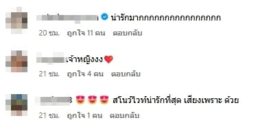 หลังจากภาพเซ็ตสุดเซ็กซี่นี้ถูกโพสต์ได้ไม่นาน ก็ทำเอาไอจีแทบแตก เพราะบรรดาแฟนคลับต่างแห่กันเข้ามากดไลก์ และคอมเมนต์กันสนั่นหวั่นไหว โดยส่วนใหญ่ต่างก็ชื่นชมในความสวย เซี๊ยะ และความกล้าที่จะฉีกแนวของสาวเบียร์ ที่เปลี่ยนเจ้าหญิงในเทพนิยายให้กลายเป็นสาวสุดฮอตปรอทแตก