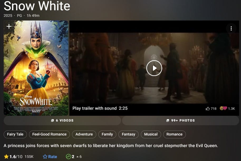 แน่นอนว่าในตอนนี้ หนึ่งในภาพยนตร์ที่กลายเป็นประเด็นถูกพุดถึงอย่างหนักคงหนีไม่พ้น สโนว์ไวท์ (Snow White) ที่ทางดิสนีย์นำกลับมาทำใหม่และเข้าฉายไปเมื่อไม่กี่สัปดาห์ที่ผ่านมา แต่กลายเป็นว่ากระแสตอบรับจากแฟนคลับไม่ค่อยดีสักเท่าไรนัก จากหลากหลายประเด็น ทั้งการเลือกนักแสดงที่ไม่เหมือนกับภาพจำเดิม และการเปลี่ยนแปลงโครงเรื่อง