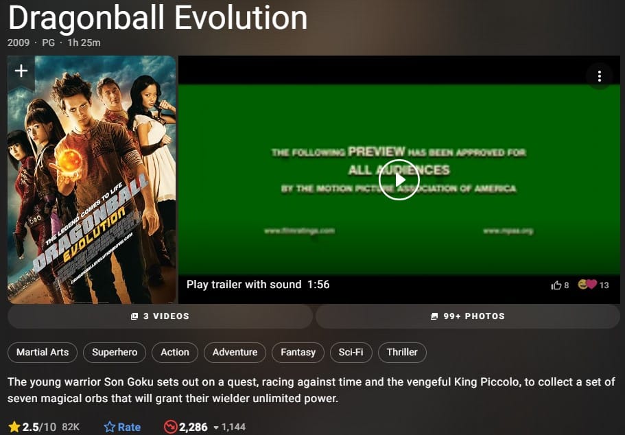 ทั้งนี้ Dragonball Evolution เคยถูกแฟนคลับทั่วโลกตราหน้าว่านี่อาจเป็นภาพยนตร์ Live Action ที่แย่ที่สุดเท่าที่เคยมีมา เพราะทีมสร้างได้เปลี่ยนภาพจำเหล่าตัวละครในมังงะของ อ.อากิระ โทริยามะ ไปแบบไม่เหลือเค้าเดิม แถมเรื่องบทและคิวบู๊ในหนังก็เข้าขั้นย่ำแย่