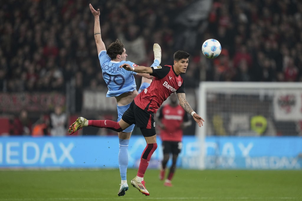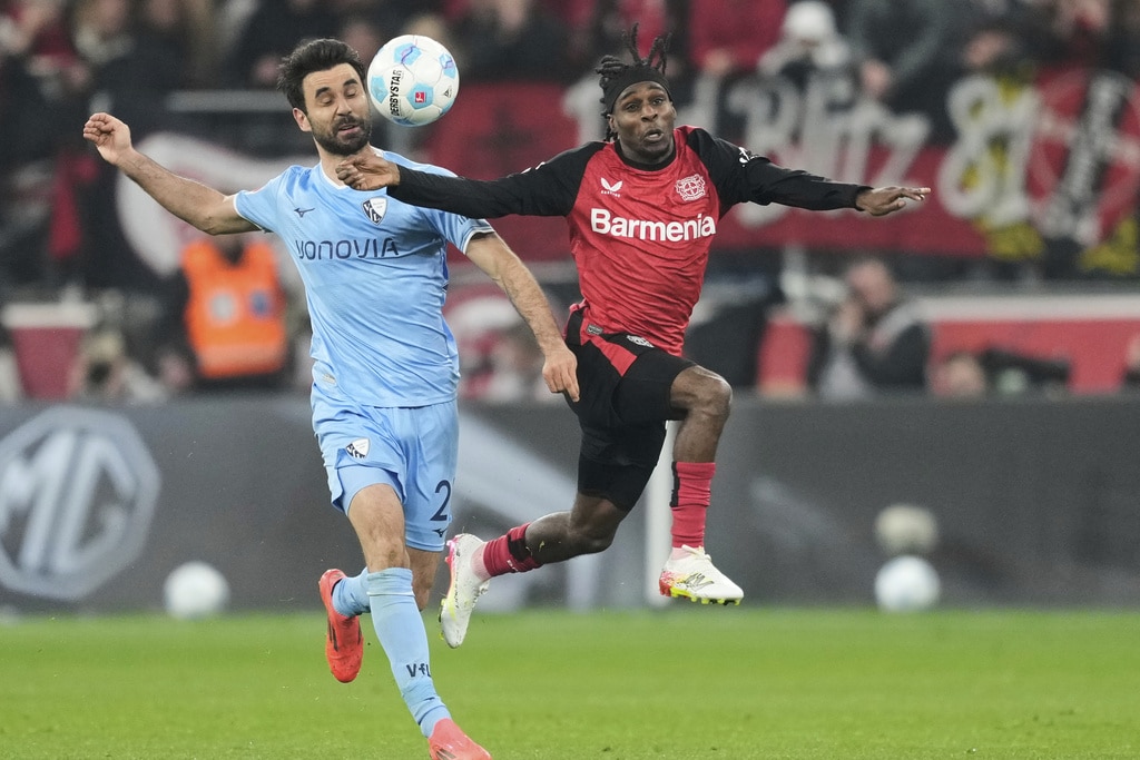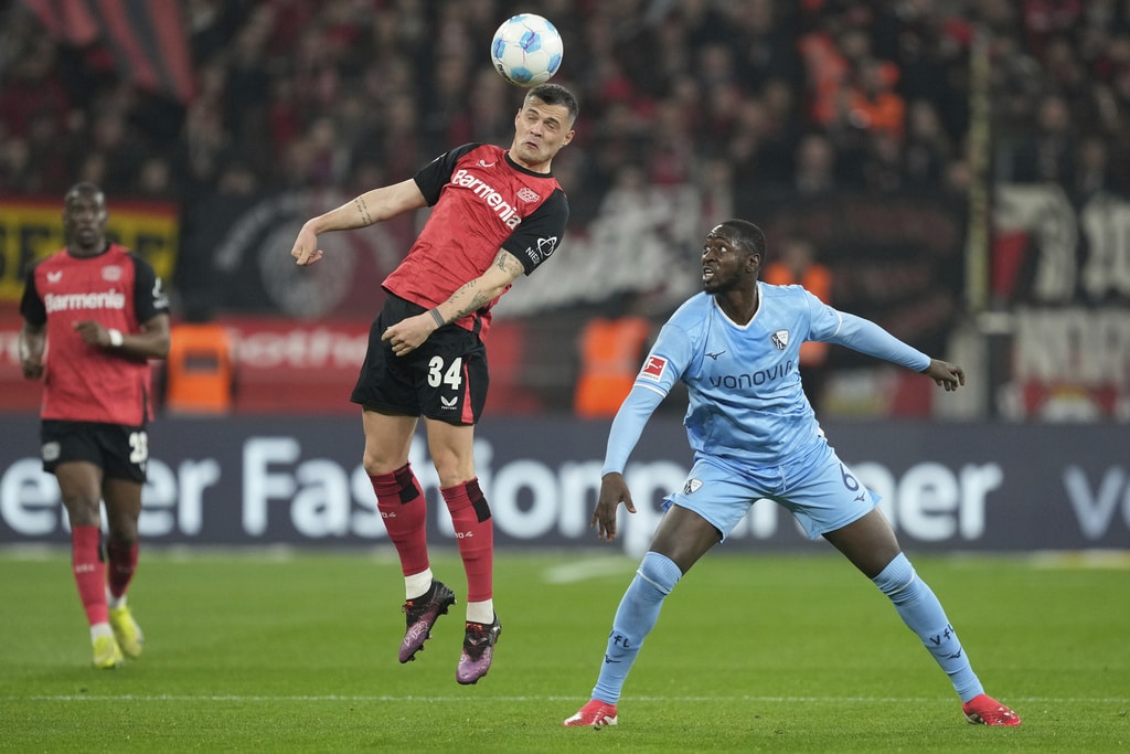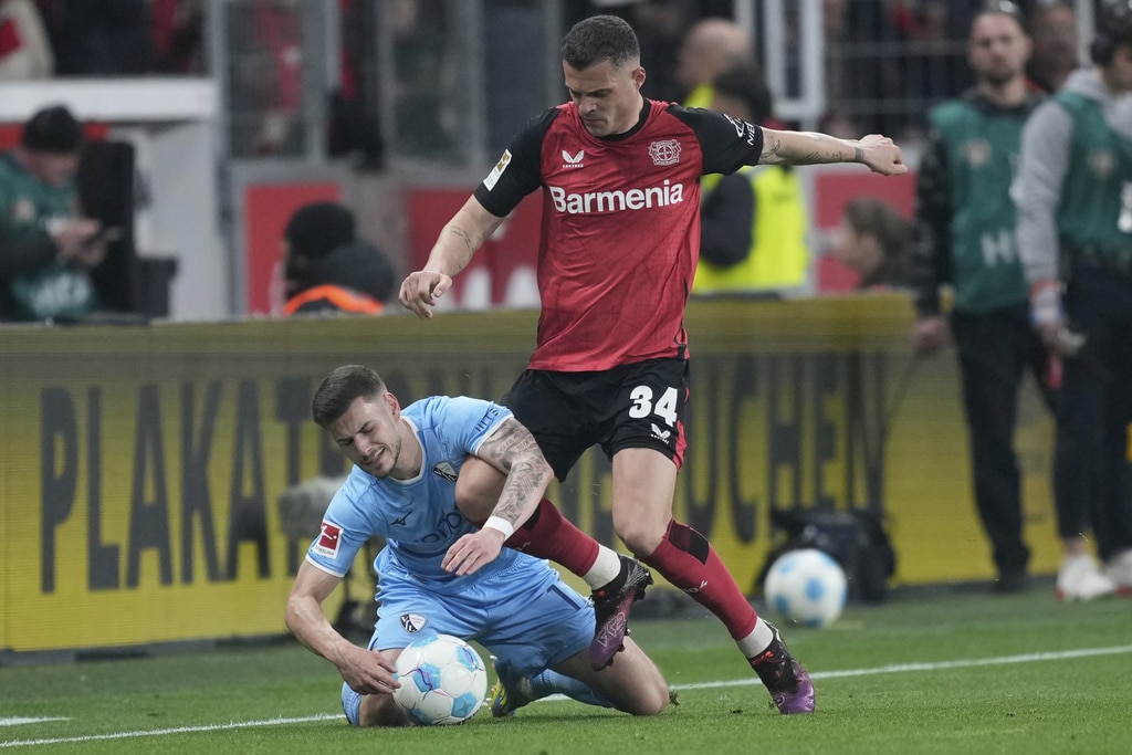 Leverkusen’s Granit Xhaka clears the ball in front of Bochum’s Ibrahima Sissoko during the German Bundesliga soccer match between Bayer Leverkusen and VfL Bochum at the BayArena in Leverkusen, Germany, Friday, March 28, 2025. (AP Photo/Martin Meissner)Leverkusen’s Granit Xhaka and Bochum’s Philipp Hofmann, up, challenge during the German Bundesliga soccer match between Bayer Leverkusen and VfL Bochum at the BayArena in Leverkusen, Germany, Friday, March 28, 2025. (AP Photo/Martin Meissner)Leverkusen’s Victor Boniface celebrates during the German Bundesliga soccer match between Bayer Leverkusen and VfL Bochum at the BayArena in Leverkusen, Germany, Friday, March 28, 2025. (AP Photo/Martin Meissner)Bochum players leave the pitch after the German Bundesliga soccer match between Bayer Leverkusen and VfL Bochum at the BayArena in Leverkusen, Germany, Friday, March 28, 2025. (AP Photo/Martin Meissner)Bochum’s Moritz Broschinski, left and Leverkusen’s Piero Hincapie jump for the ball during the German Bundesliga soccer match between Bayer Leverkusen and VfL Bochum at the BayArena in Leverkusen, Germany, Friday, March 28, 2025. (AP Photo/Martin Meissner)Bochum’s Cristian Gamboa, left, and Leverkusen’s Jeremie Frimpong fight for the ball during the German Bundesliga soccer match between Bayer Leverkusen and VfL Bochum at the BayArena in Leverkusen, Germany, Friday, March 28, 2025. (AP Photo/Martin Meissner)Leverkusen’s Granit Xhaka fouls Bochum’s Tom Krauss during the German Bundesliga soccer match between Bayer Leverkusen and VfL Bochum at the BayArena in Leverkusen, Germany, Friday, March 28, 2025. (AP Photo/Martin Meissner)