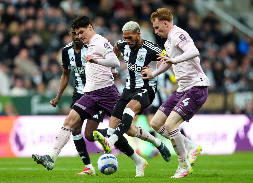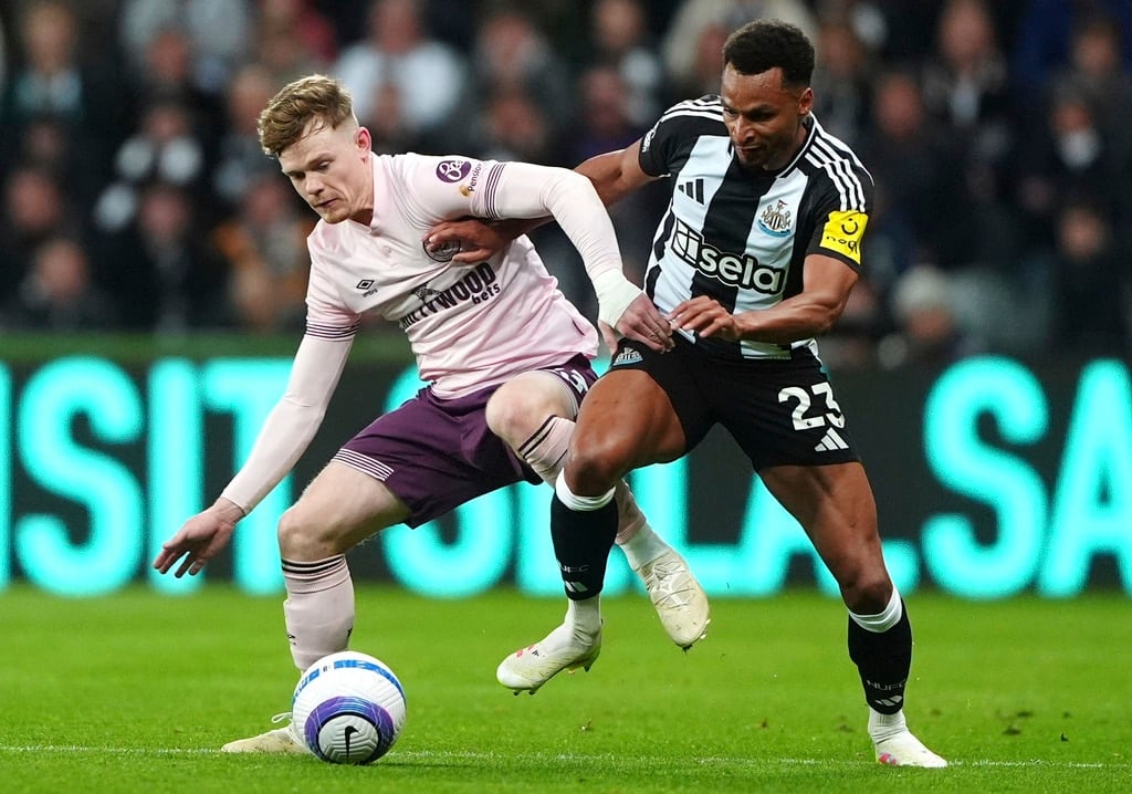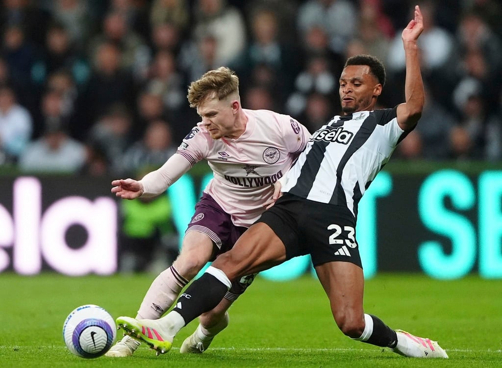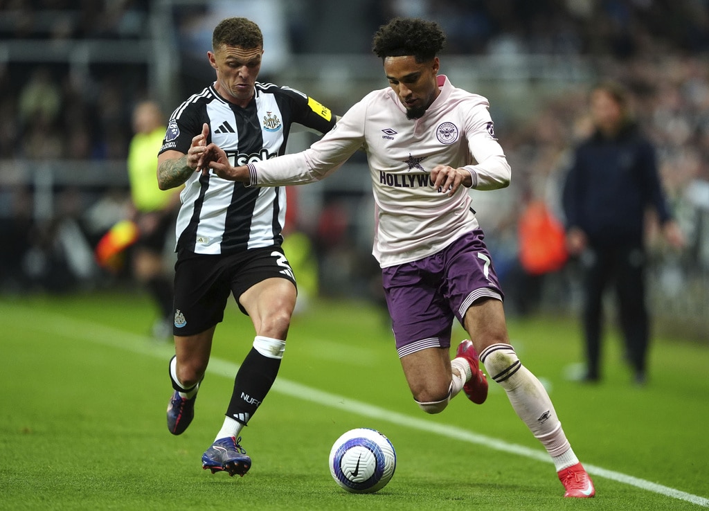 Brentford’s Christian Norgaard, from left, Newcastle United’s Joelinton and Brentford’s Sepp van den Berg battle for the ball during the English Premier League soccer match between Brentford and Newcastle United at St James’ Park in Newcastle upon Tyne, England, Wednesday, April 2, 2025. (Owen Humphreys/PA via AP)Newcastle United’s Alexander Isak, left, scores their side’s first goal of the game during the English Premier League soccer match between Brentford and Newcastle United at St James’ Park in Newcastle upon Tyne, England, Wednesday, April 2, 2025. (Owen Humphreys/PA via AP)Brentford’s Keane Lewis-Potter, left, and Newcastle United’s Jacob Murphy battle for the ball during the English Premier League soccer match between Brentford and Newcastle United at St James’ Park in Newcastle upon Tyne, England, Wednesday, April 2, 2025. (Owen Humphreys/PA via AP)Brentford’s Keane Lewis-Potter, left, and Newcastle United’s Jacob Murphy battle for the ball during the English Premier League soccer match between Brentford and Newcastle United at St James’ Park in Newcastle upon Tyne, England, Wednesday, April 2, 2025. (Owen Humphreys/PA via AP)Newcastle United’s Kieran Trippier, left, and Brentford’s Kevin Schade battle for the ball during the English Premier League soccer match between Brentford and Newcastle United at St James’ Park in Newcastle upon Tyne, England, Wednesday, April 2, 2025. (Owen Humphreys/PA via AP)