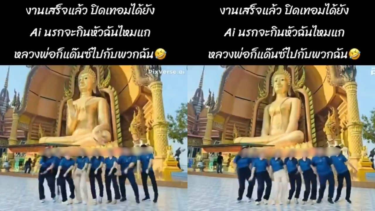 กลายเป็นประเด็นที่ถูกพูดถึงในโลกออนไลน์ เมื่อมีบัญชีผู้ใช้งาน TikTok ได้มีการโพสต์คลิป เป็นกลุ่มชาย-หญิง 8 คน สวมเสื้อยืดสีกรมท่า ใช้ AI ทำคลิปเต้นพร้อมกับพระพุทธรูปที่อยู่ด้านหลัง โดยในคลิปมีข้อความว่า