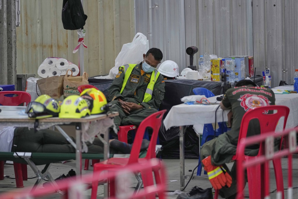 แฟ้มภาพ Fb. @bangkokbmaแฟ้มภาพ Fb. @bangkokbmaแฟ้มภาพ Fb. @bangkokbmaแฟ้มภาพ Fb. @bangkokbmaแฟ้มภาพ Fb. @bangkokbmaแฟ้มภาพ Fb. @bangkokbmaแฟ้มภาพ Fb. @bangkokbmaRescuers get ready for the day to work at the site of an under-construction high-rise building that collapsed after an earthquake in Bangkok, Thailand, Monday, March 31, 2025. (AP Photo/Manish Swarup)A radio operator rests after working overnight in his makeshift center at the site of an under-construction high-rise building that collapsed after an earthquake in Bangkok, Thailand, Monday, March 31, 2025. (AP Photo/Manish Swarup)Rescuers rest after working overnight at the site of an under-construction high-rise building that collapsed after an earthquake in Bangkok, Thailand, Monday, March 31, 2025. (AP Photo/Manish Swarup)Thai army soldiers stand guard as municipal workers clean the area outside the site of an under-construction high-rise building that collapsed after an earthquake in Bangkok, Thailand, Monday, March 31, 2025. (AP Photo/Manish Swarup)A rescuer from the Urban Search And Rescue (USAR) watches from his camp at the site of an under-construction high-rise building that collapsed after an earthquake in Bangkok, Thailand, Monday, March 31, 2025. (AP Photo/Manish Swarup)A rescuer rests after working overnight at the site of an under-construction high-rise building that collapsed after an earthquake in Bangkok, Thailand, Monday, March 31, 2025. (AP Photo/Manish Swarup)Rescuers working overnight rest in their makeshift center at the site of an under-construction high-rise building that collapsed after an earthquake in Bangkok, Thailand, Monday, March 31, 2025. (AP Photo/Manish Swarup)Rescuers and medical staff take stock of the situation at the site of an under-construction high-rise building that collapsed after an earthquake in Bangkok, Thailand, Monday, March 31, 2025. (AP Photo/Manish Swarup)Rescuers work at the site of an under-construction high-rise building that collapsed on Friday after an earthquake in Bangkok, Thailand, Sunday, March, 30, 2025. (AP Photo/Wason Wanichakorn)A rescuer looks for survivors at the site of an under-construction high-rise building that collapsed after an earthquake in Bangkok, Thailand, Monday, March, 31, 2025. (AP Photo/Wason Wanichakorn)Rescuers work at the site of an under-construction high-rise building that collapsed on Friday after an earthquake in Bangkok, Thailand, Sunday, March, 30, 2025. (AP Photo/Wason Wanichakorn)Heavy machineries clear the debris as rescuers work at the site of an under-construction high-rise building that collapsed on Friday after an earthquake in Bangkok, Thailand, Sunday, March, 30, 2025. (AP Photo/Manish Swarup)A worker checks an earthmover as rescuers work at the site of an under-construction high-rise building that collapsed on Friday after an earthquake in Bangkok, Thailand, Sunday, March, 30, 2025. (AP Photo/Manish Swarup)High rise buildings are seen on the skyline of Bangkok, Thailand, Sunday, March, 30, 2025. (AP Photo/Manish Swarup)Heavy machineries clear the debris as rescuers work at the site of an under-construction high-rise building that collapsed on Friday after an earthquake in Bangkok, Thailand, Sunday, March, 30, 2025. (AP Photo/Manish Swarup)An earthmover clears the debris at the site of an under-construction high-rise building that collapsed on Friday after an earthquake in Bangkok, Thailand, Sunday, March, 30, 2025. (AP Photo/Manish Swarup)Rescuers carry a body of a worker from the site of an under-construction high-rise building that collapsed on Friday after an earthquake in Bangkok, Thailand, Sunday, March, 30, 2025. (AP Photo/Manish Swarup)A person prays for the safety of his relative and pays homage to others who have died, at the site of an under-construction high-rise building that collapsed on Friday after an earthquake in Bangkok, Thailand, Sunday, March, 30, 2025. (AP Photo/Manish Swarup)