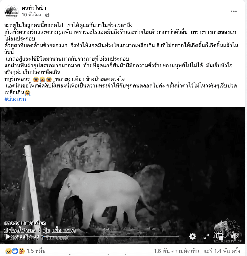 ในโพสต์นั้น คนรักช้าง ต่างเข้ามาแสดงความคิดเห็นและร่วมไว้อาลัยต่อการจากไปของช้างป่าตัวนี้เป็นจำนวนมาก อาทิ “สู่สุคตินะพลายงาเดียว”, “ขอให้ไปเกิดเป็นเทวดานะพ่องาเดียว ใครทำกับพ่อขอให้กรรมตามทัน” และ “ข่าวเศร้าจริงๆ ขอให้ไปสู่ภพภูมิที่ดี” สะท้อนให้เห็นถึงความผูกพันและความห่วงใยที่ผู้คนมีต่อช้างป่าตัวนี้