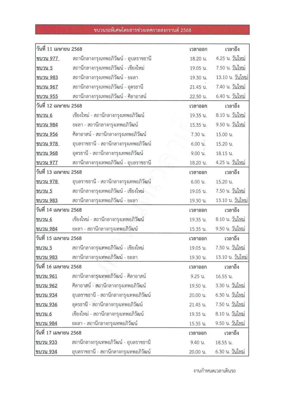 การรถไฟแห่งประเทศไทย เพิ่มขบวนเสริมพิเศษ 26 เที่ยว ต้อนรับสงกรานต์ 2568 พร้อมมาตรการอำนวยความสะดวก ปชช. เริ่มขายตั๋ว 3 เม.ย.