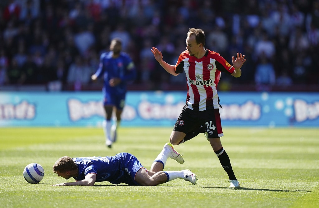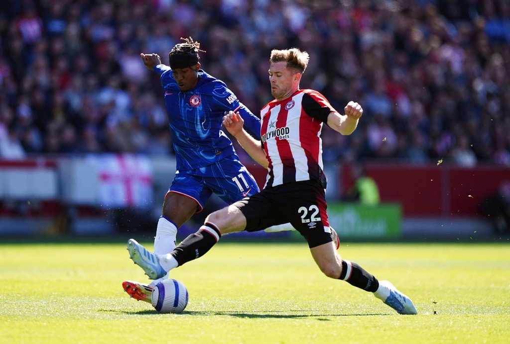Chelsea’s Malo Gusto, left and Brentford’s Kevin Schade vie for the ball, during the English Premier League soccer match between Brentford and Chelsea, at the Gtech Community Stadium, in London, Sunday April 6, 2025. (Zac Goodwin/PA via AP)Chelsea’s Noni Madueke, right and Brentford’s Nathan Collins collide as they vie for the ball, during the English Premier League soccer match between Brentford and Chelsea, at the Gtech Community Stadium, in London, Sunday April 6, 2025. (Zac Goodwin/PA via AP)Chelsea’s Noni Madueke, left and Brentford’s Nathan Collins vie for the ball , during the English Premier League soccer match between Brentford and Chelsea, at the Gtech Community Stadium, in London, Sunday April 6, 2025. (Zac Goodwin/PA via AP)Brentford’s Yehor Yarmolyuk and Chelsea’s Jadon Sancho vie for the ball during the English Premier League soccer match between Brentford and Chelsea, at the Gtech Community Stadium, in London, Sunday April 6, 2025. (Zac Goodwin/PA via AP)Chelsea’s Kiernan Dewsbury-Hall, left and Brentford’s Mikkel Damsgaard vie for the ball during the English Premier League soccer match between Brentford and Chelsea, at the Gtech Community Stadium, in London, Sunday April 6, 2025. (Zac Goodwin/PA via AP)