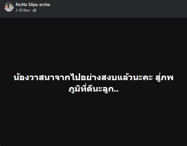 วันนี้ (4 เมษายน) เพจเฟซบุ๊ก NuNa Silpa-archa ของ “หนูนา-กัญจนา ศิลปอาชา” ประธานคณะกรรมการที่ปรึกษาพรรคชาติไทยพัฒนา และอดีต รมช. ศึกษาธิการ ได้มีการโพสต์แจ้งข่าวว่า “พังวาสนา” ลูกช้างที่กำลังรักษาตัวอยู่ที่โรงพยาบาลช้าง ศูนย์อนุรักษ์ช้างไทย จ.ลำปาง ระบุว่า “น้องวาสนาจากไปอย่างสงบแล้วนะคะ สู่ภพภูมิที่ดีนะลูก..” ทำเอาชาวเน็ตและคนรักษ์สัตว์เข้ามาคอมเมนต์แสดงความเสียใจต่อการจากไปของ พังวาสนา