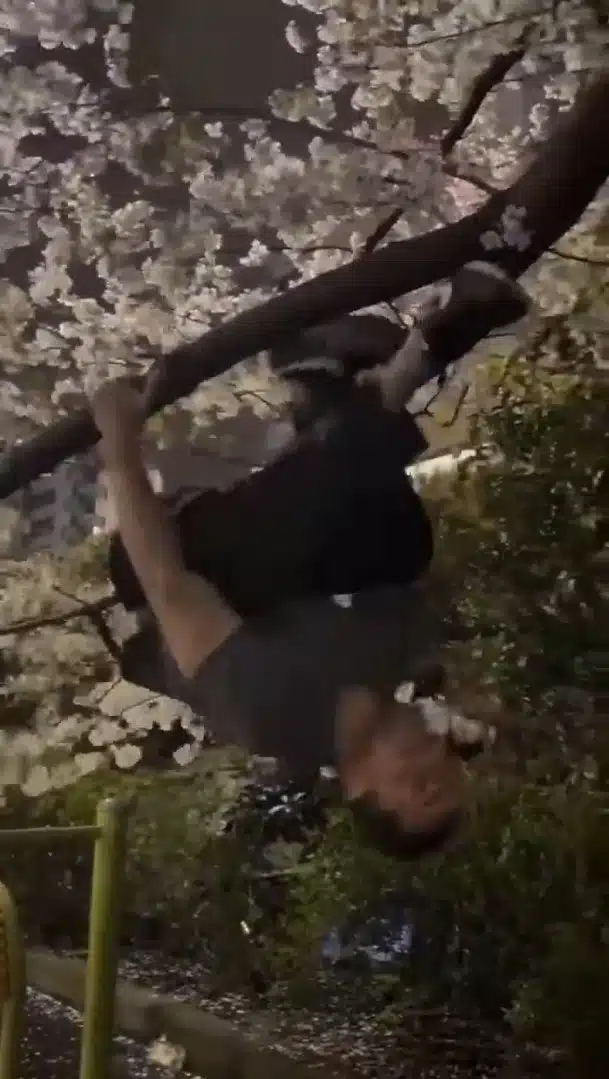 I saw a video of content creators I've met before doing pull-ups and gymnastic tricks on a sakura tree's branches, inevitably shaking cherry-blossom petals off.