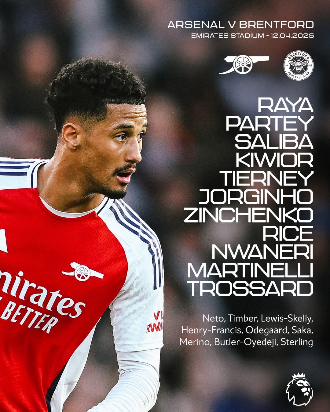I12 เมษายน 2568 รายชื่อผู้เล่น 11 ตัวจริง อาร์เซนอล พบ เบรนท์ฟอร์ด ศึกฟุตบอล พรีเมียร์ลีก ฤดูกาล 2024-25 คืนนี้ ลิงก์ถูกลิขสิทธิ์ ดูบอลสดออนไลน์ ทาง True Premier Football เวลา 23:30 น.