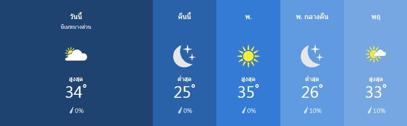 มีเมฆมากเป็นบางส่วน สูง 34เซลเซียส ความเร็วลม ตะวันออก ตะวันออกเฉียงใต้ ที่ 10 ถึง 15 กิโลเมตรต่อชั่วโมง