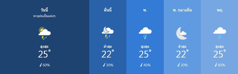 เกิดพายุฟ้าคะนองกระจาย สูง 25เซลเซียส ความเร็วลม ตะวันออก ตะวันออกเฉียงใต้ ที่ 25 ถึง 40 กิโลเมตรต่อชั่วโมง โอกาสที่ฝนจะตก 60%