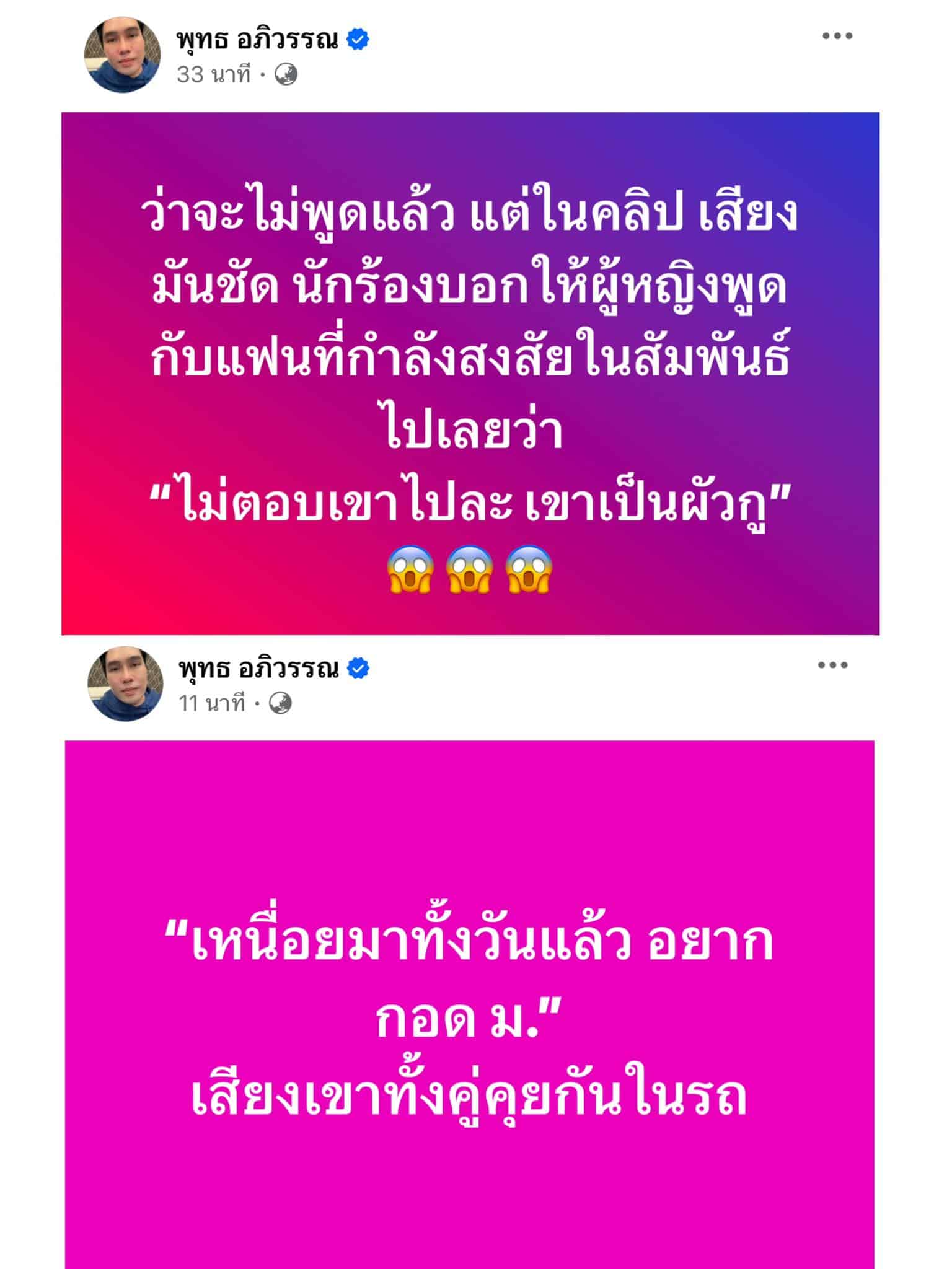 “ว่าจะไม่พูดแล้ว แต่ในคลิปเสียงมันชัด นักร้องบอกให้ผู้หญิงพูดกับแฟนที่กำลังสงสัยในสัมพันธ์ไปเลยว่า ‘ไม่ตอบเขาไปละ เขาเป็นผัวกู’”