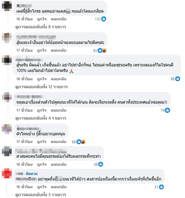 ขณะที่ชาวเน็ตที่ทราบเรื่องราวทั้งหมดของปริศนานี้ต่างก็เข้ามาแสดงความคิดเห็นใต้โพสต์ของอีซ้อกันอย่างมากมาย โดยส่วนใหญ่ต่างก็ออกมาประณามการกระทำของหลวงประดิษฐ์ และพากันสงสารนางเอกสาว ทั้งยังอยากให้นักร้องดังหยุดเอาเรื่องส่วนตัวกับปัญหาที่ตัวเองก่อขึ้นไปพูดบนเวที